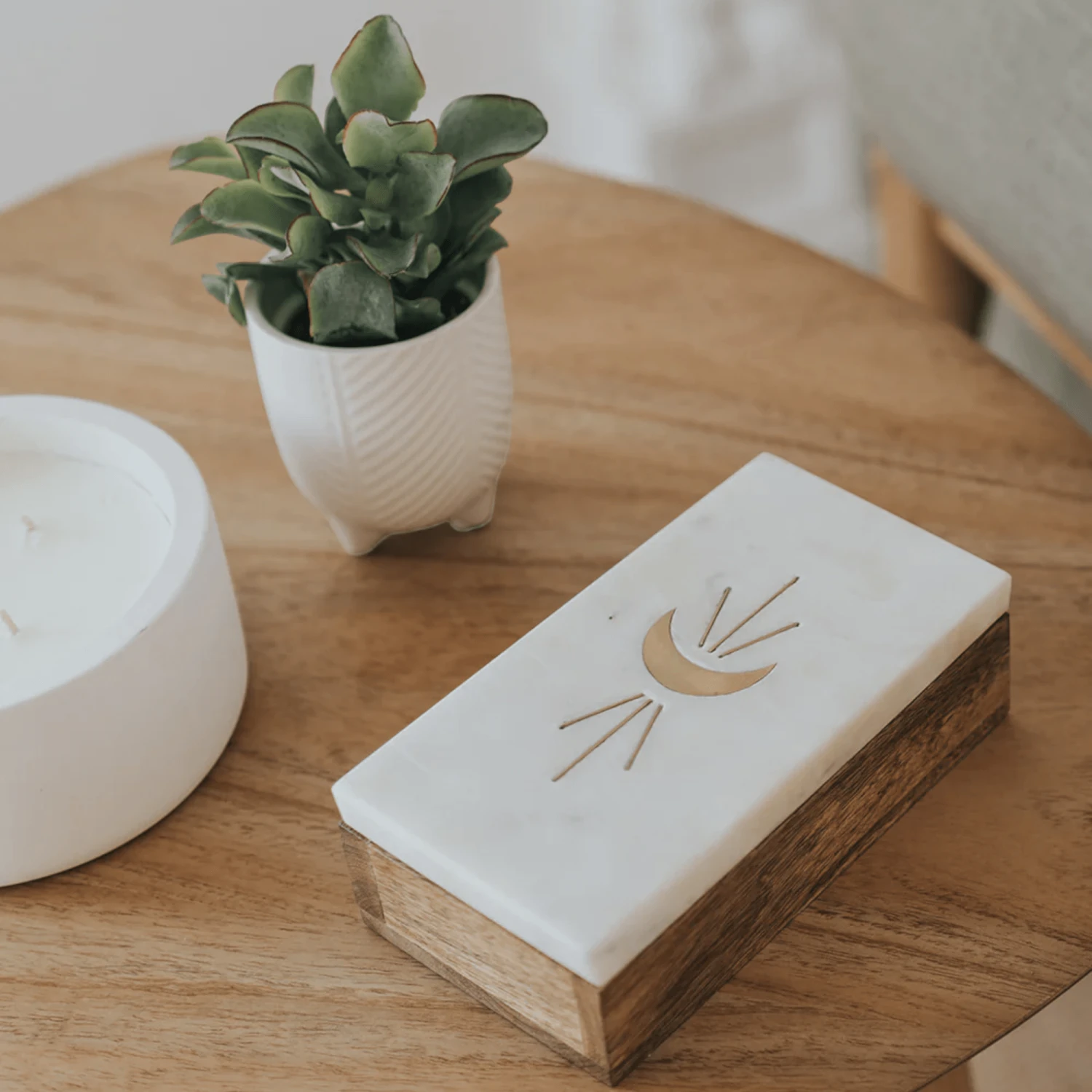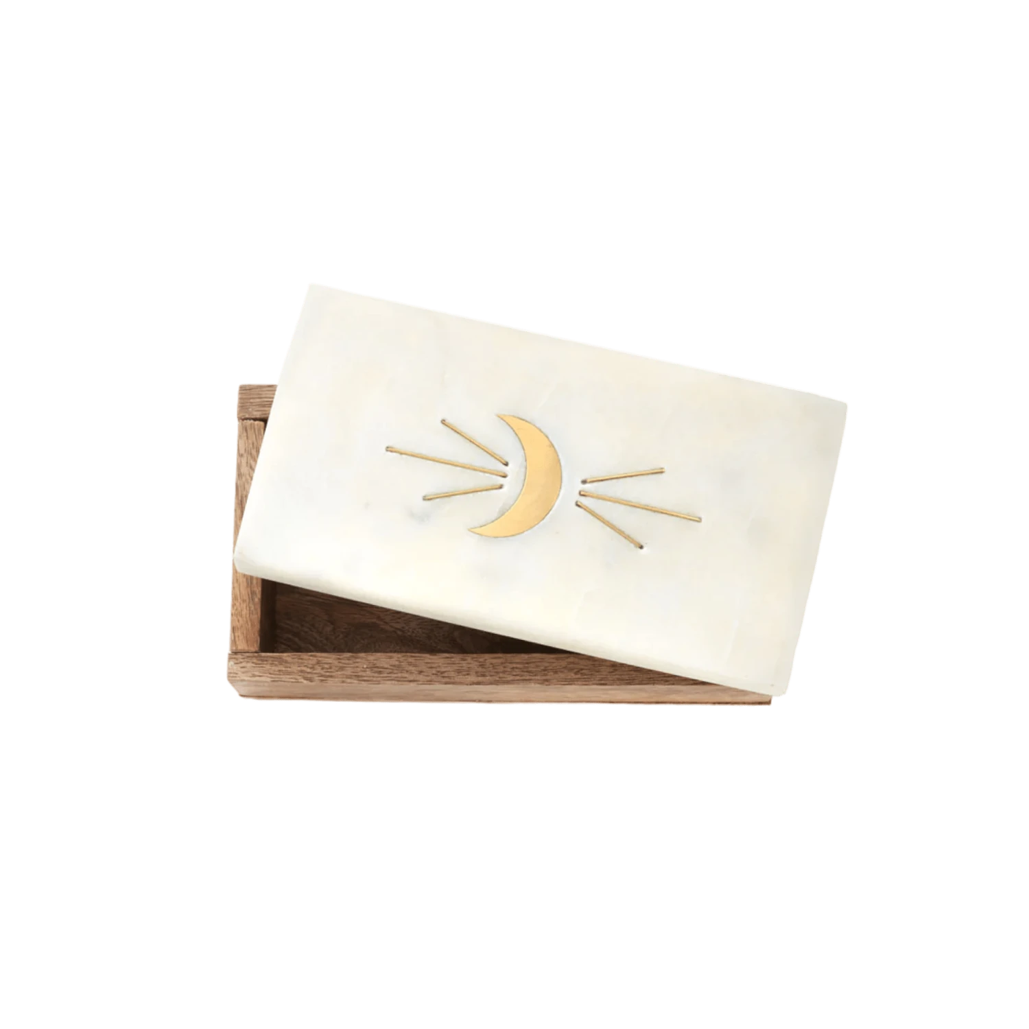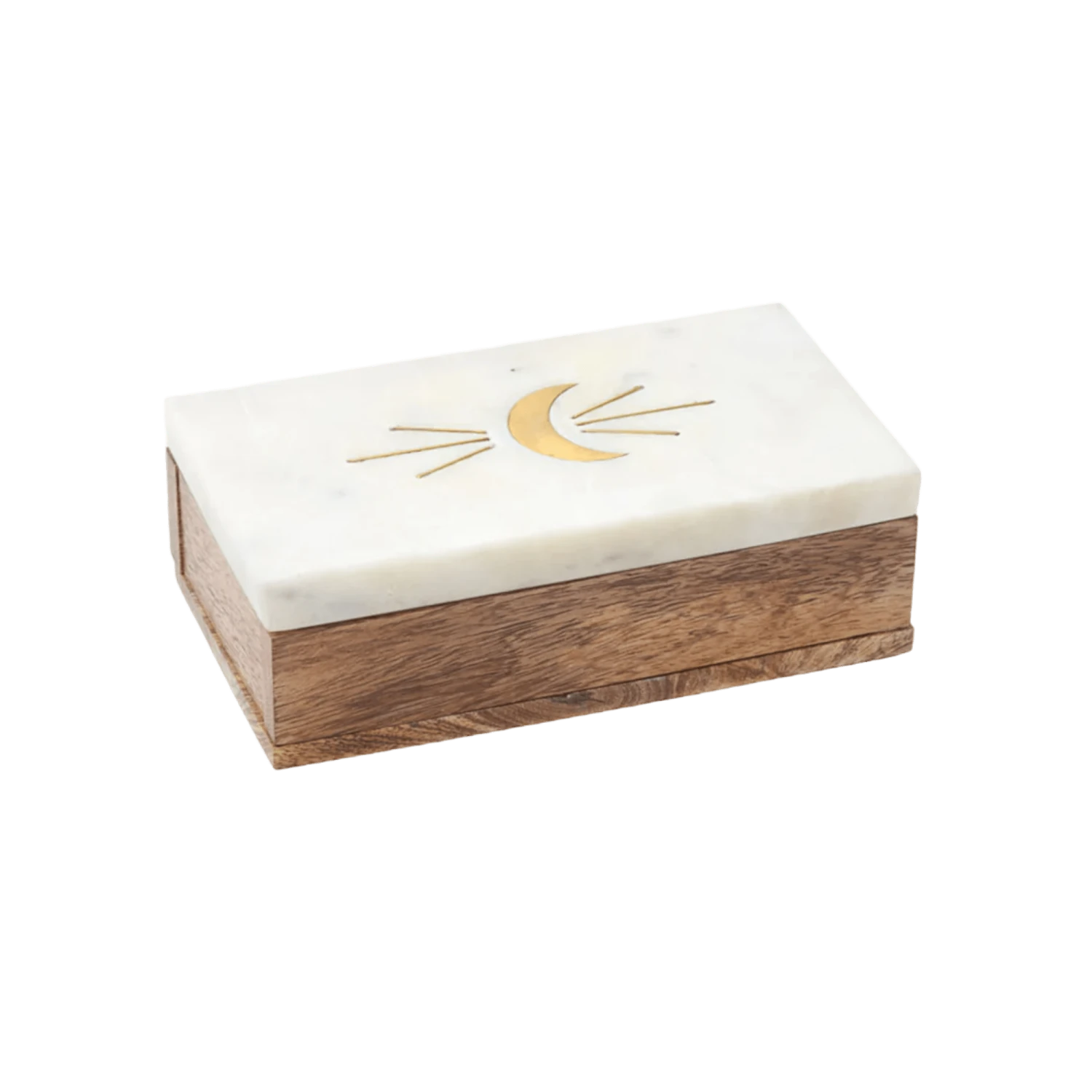 This Anayra Crescent Moon Treasure Box is the perfect accent for any room. Handcrafted with sustainably harvested mango wood and a brass lunar crescent moon design inlaid on the marble lid, it’s an eye-catching piece that doubles as a storage solution. Ideal for jewelry, keepsakes, Knick knacks, and more, this heirloom box is the perfect gift for weddings, christenings, birthdays, and more.