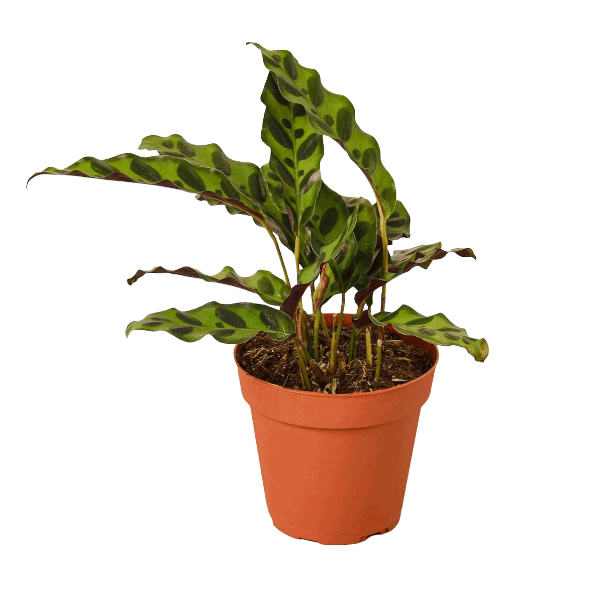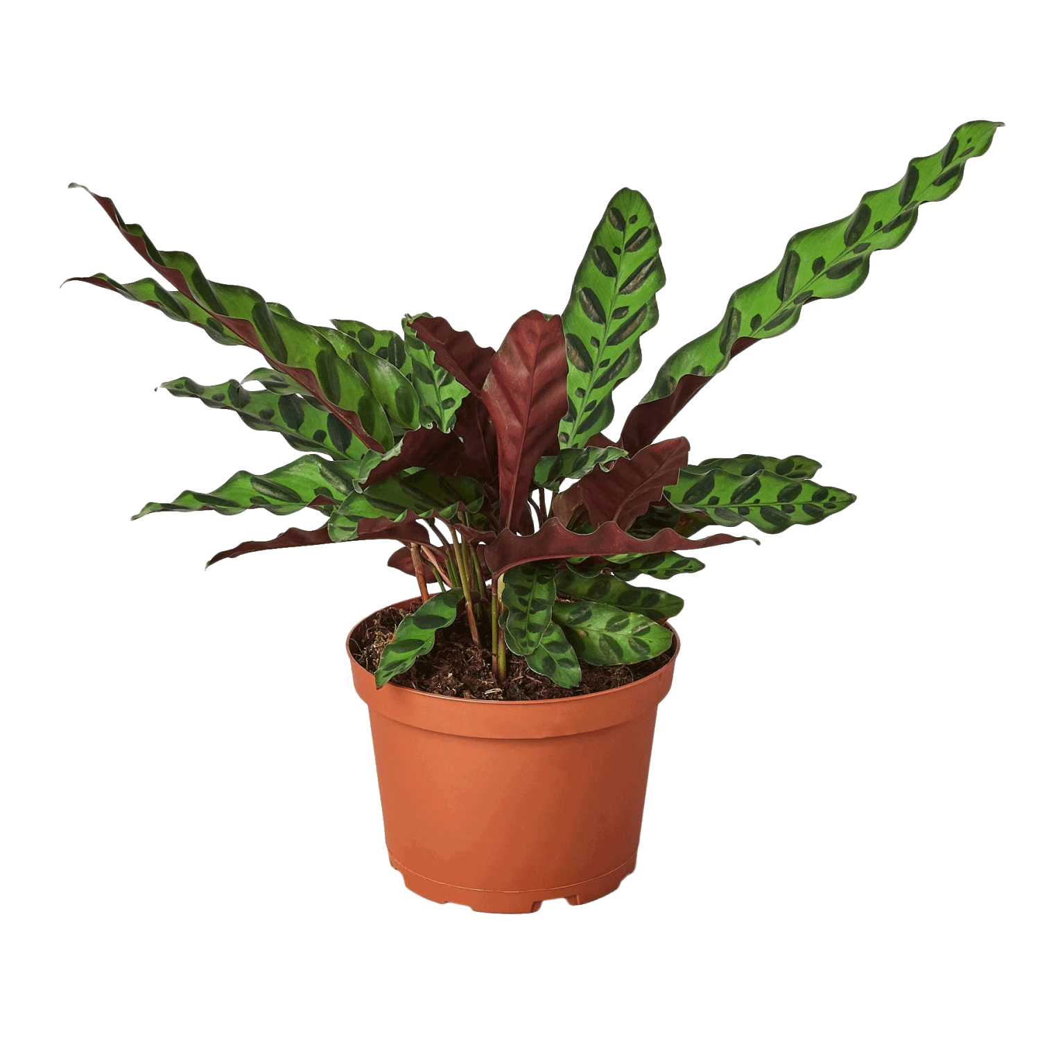 This Calathea Lancifolia also commonly called the Rattlesnake comes with dark green leaves that have unique ripples. Like all Calathea plants, the leaves adjust as the sun rotates throughout the day. Calathea Plants, native to tropical South and Central America, Africa, and the West Indies, are grown primarily for their beautiful, brightly colored, upright, oval leaves.Â