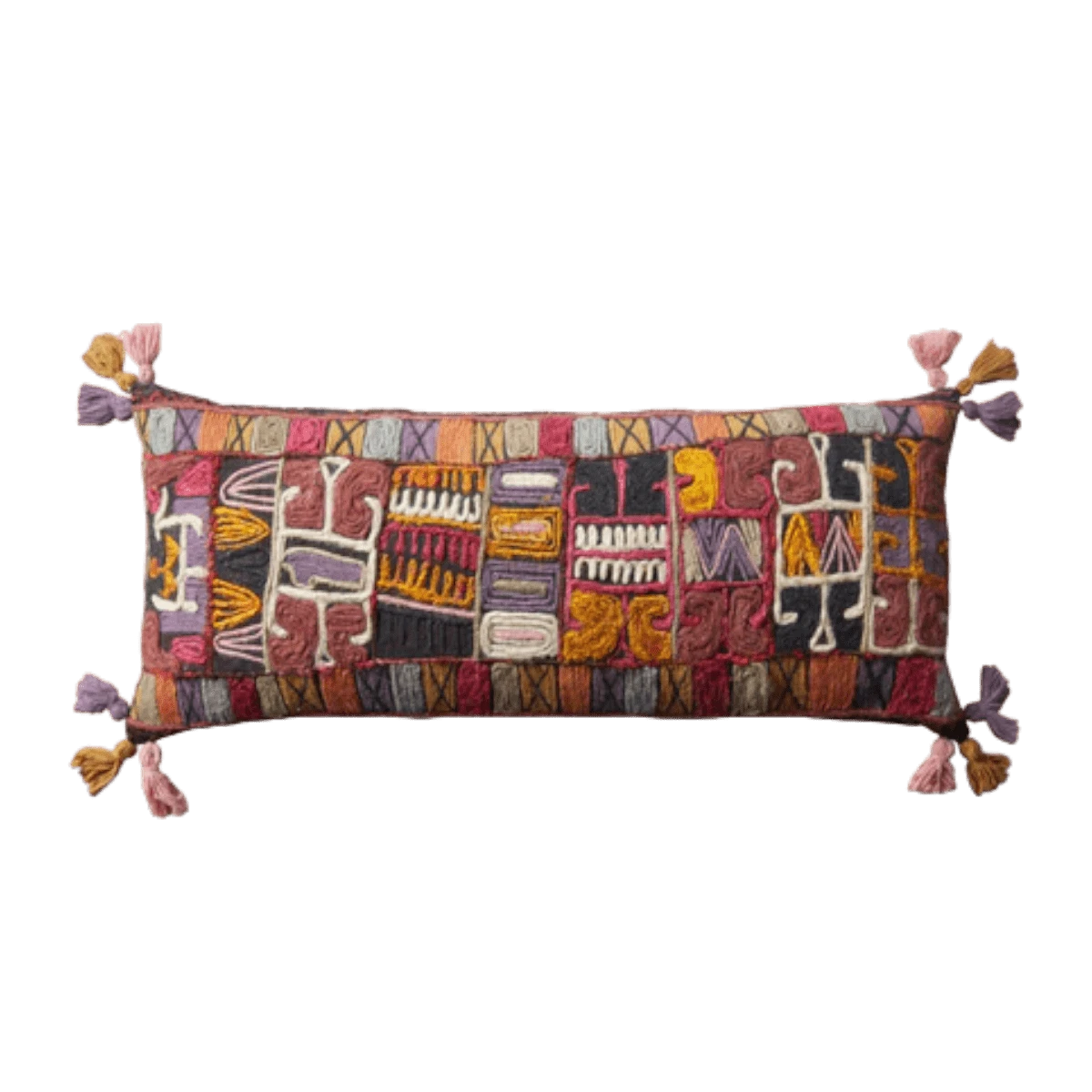 Let your sofa stand out with this unique, tassel-edged lumbar pillow handcrafted in India.Â
