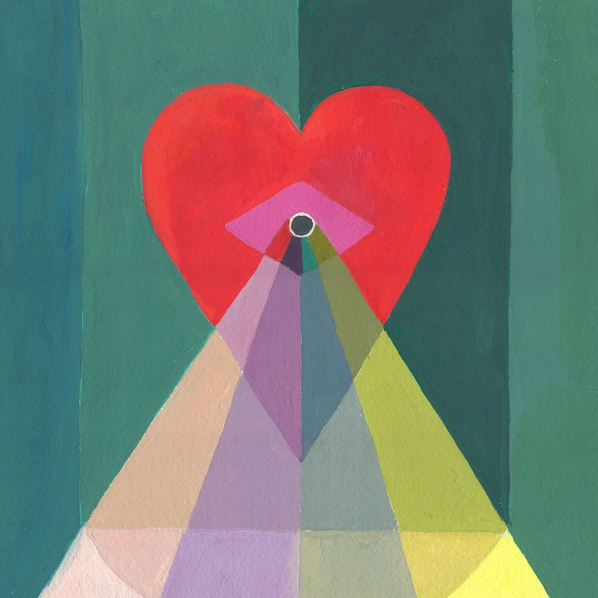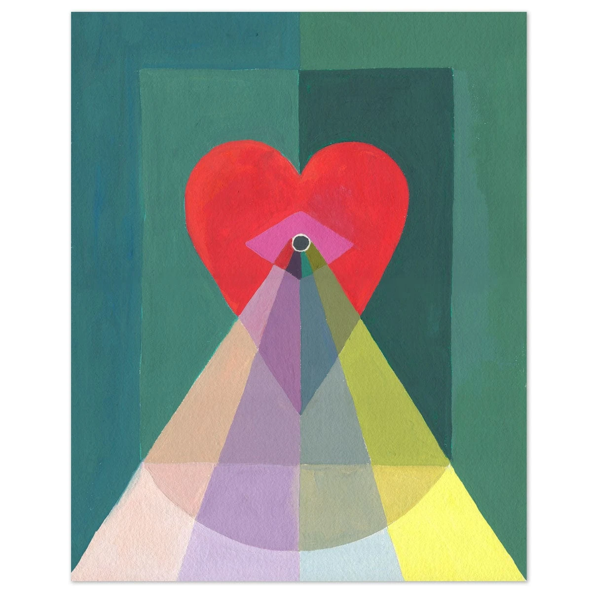 “This painting is my representation of a concept introduced to me by my therapist: When faced with the pain, hardship and sadness of others, do not look away, face it. Breath it in and let it into your heart. Synthesize it, exhale it out into the universe. Beam it out as love.”- Justina