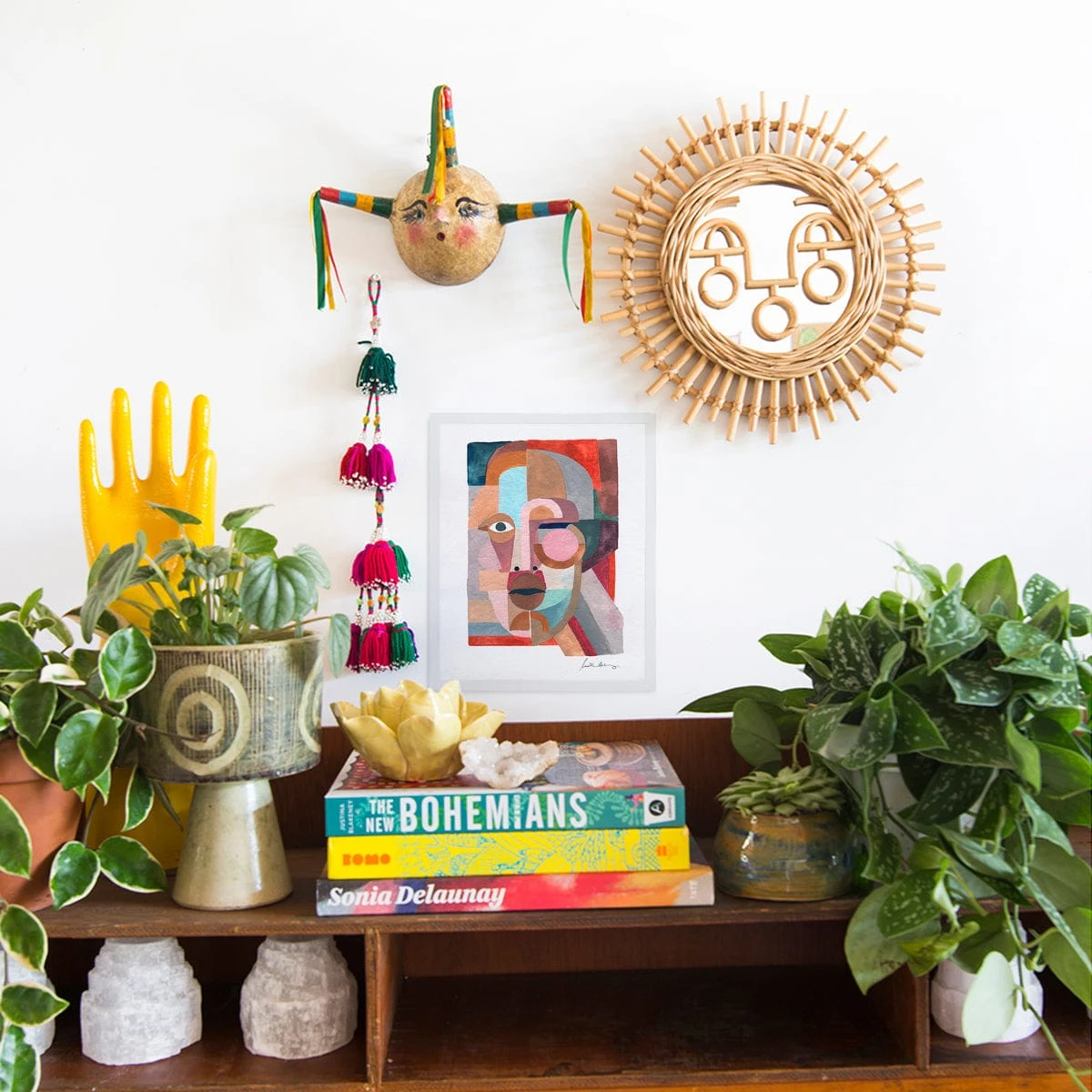 Justina Blakeney is an artist, designer, and founder of Jungalow®. She employs watercolor, gouache, collage, and pen on paper to create her artworks and explores themes of identity and togetherness.