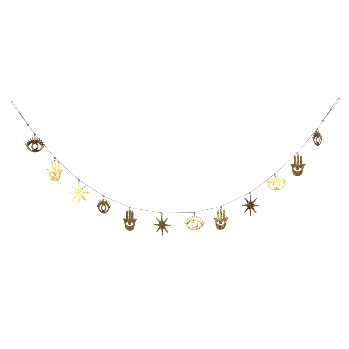Liven up your home with this unique Iron Hamsa + Evil Eye Wall Hanging from My Urban Crafts! This Bohemian-inspired artwork showcases 12 icon pendants on an extra-long jute string, creating a celestial look with modern flair. Add a touch of the sky indoors and let your space sparkle with stylishness!