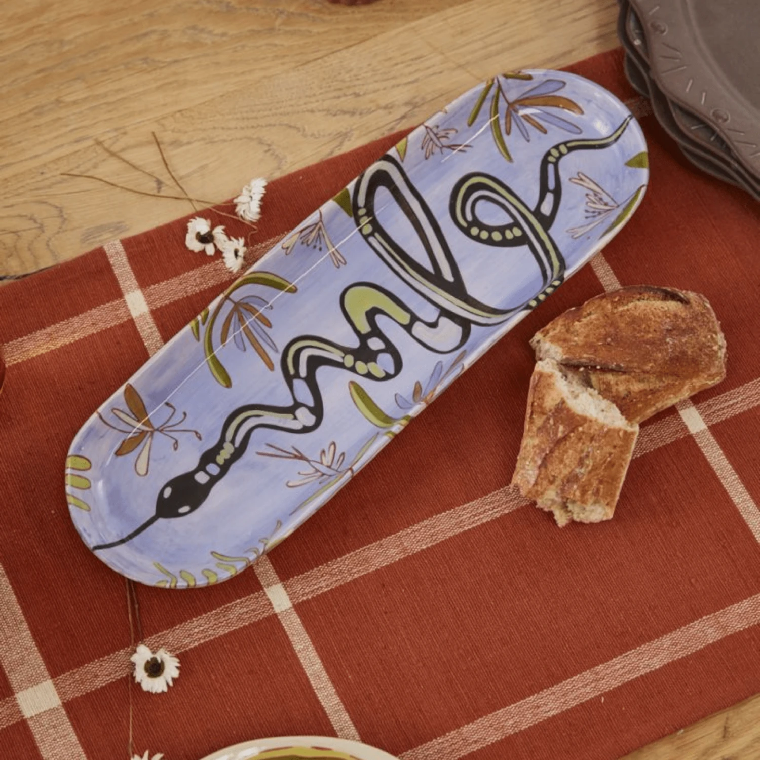This stunning tray is where vibrant folk art and playful patterns collide. Let this plate be the epicenter of your tablescape.