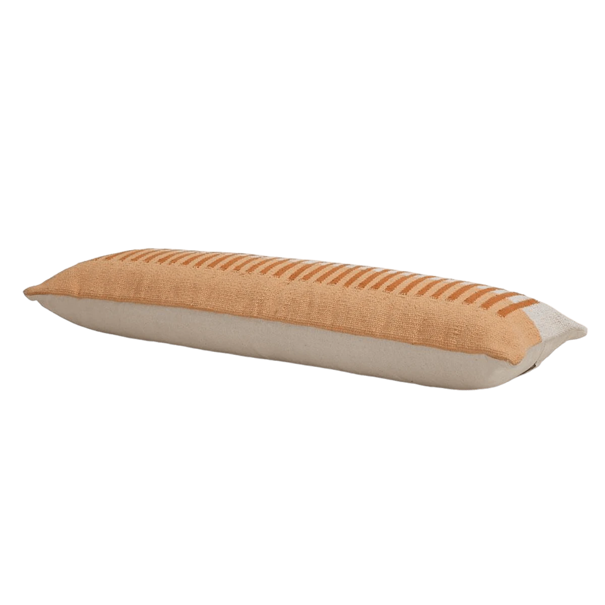 This pillow takes its inspiration from the colors of the sunset. Handmade by master weavers on pit looms, artisans use traditional Indian weaving techniques.